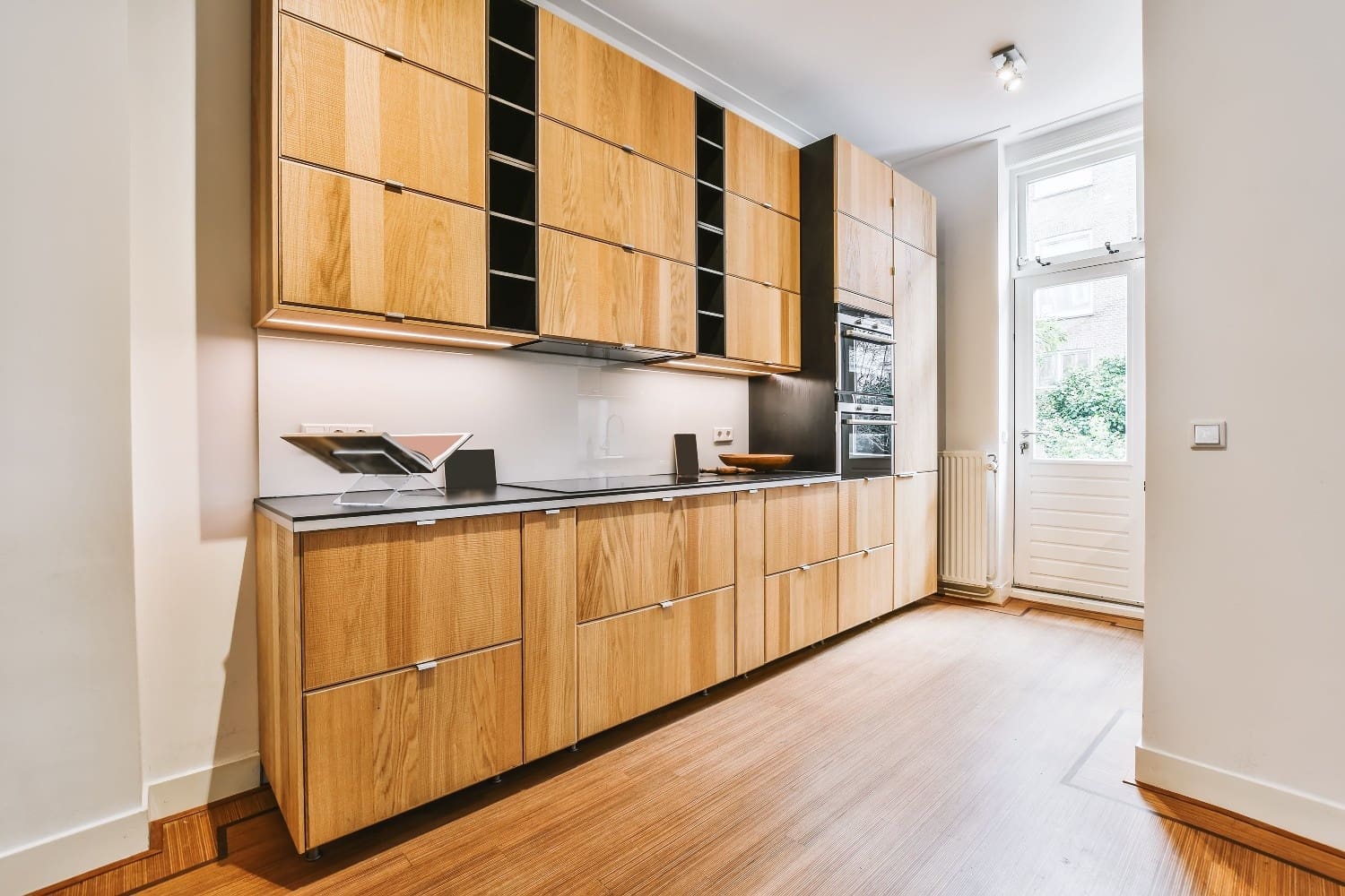 We apply wood conditioners when appropriate for even absorption, use professional techniques for consistent stain coverage, wipe and blend stain for uniform color development, and allow proper drying before protective coating.